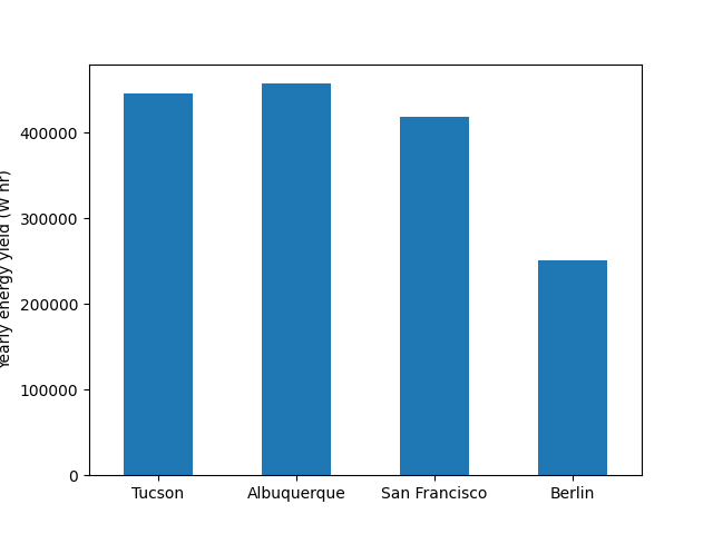 Out[27]: Text(0, 0.5, 'Yearly energy yield (W hr)')